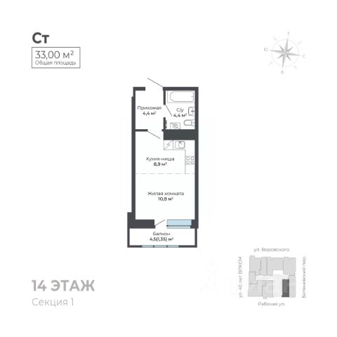 Квартал героев Леонов, Дом 2- это семейный квартал, расположенный в центральном районе г. Ижевска, на пересечении улиц Пушкинской и В. Чугуевского. Удобная транспортная развязка позволит за 7 минут добраться до Центральной площади, сходить в Цирк или прогуляться в "Летнем саду". В шаговой доступности вся инфраструктура центра города, продуктовые магазины, аптеки, мед. учреждения, автосервисы, кафе, рестораны, эко-рынки, образовательные и развлекательные учреждения: ВкусВилл, Школа 91, Спорт.клуб "Проформа", Школа 97, Школа искусств 9, Дом Дружбы народов, ЗАГС, Гастроном, Лингвистический Лицей 25, Цирк, Шахматный клуб, Школа юных летчиков, Бассейн "Сила воды", Стадион "Динамо", Михайловский собор, Летний сад, Стелла "Навеки с Россией", Гуманитарный лицей 30, Центральная площадь. Квартал героев Леонов единственный в своем роде проект квартальной застройки в микрорайоне "Ю-2". Мы включили в него закрытый внутренний двор без машин, огороженный с трех сторон домами, парковочные места вынесены за периметр двора, отсутствие шума от дороги за счет того, что дома не примыкают непосредственно к проезжей части. 17-этажное односекционное здание дома позволяет своим жителям уже со средних этажей любоваться панорамными видами из своих окон. Преимущества дома: Парадный холл в стильной благородной отделке и понятной навигацией. Колясочная для хранения колясок и спортивного инвентаря вне квартиры. Велопарковка организована у подъезда. Место для консьержа для организации чистоты и порядка. Сквозной подъезд для удобства захода в здание и изнутри двора и со стороны улицы. Два просторных и бесшумных лифта для быстрой и бесперебойной работы. Обустройство придомовой территории: Для маленьких детей: качели, песочница, батуты. Для детей постарше: велосипедная дорожка, спортивная площадка, зимой хоккейная площадка. Для взрослых: пергола зона с шезлонгами и скамьями для отдыха. Для всех возрастов: пешеходные дорожки, газоны, клумбы, ель в центре двора. Технологические решения: Теплое панорамное остекление лоджий с двухкамерными стеклопакетами. Увеличенные окна с пятикамерным профилем. Надежная металлическая входная дверь с проверенной фурнитурой. Корзины для кондиционеров для единого стиля фасада. Толстые наружные стены (кирпичные стены с фасадным утеплением). Полусухая стяжка пола. Трубы с пониженным уровнем шума Безопасность: Система видеонаблюдения по периметру квартала и во дворе. Видеодомофон. Огороженная территория квартала. Зона консьержа. Противопожарная система (пожарные датчики, дымоудаление). Предусмотрена предчистовая или чистовая отделка квартиры современными материалами в светлых тонах. Срок ввода в эксплуатацию I кв. 2026г. Условия приобретения: ФЗ-214 (с эскроу-счетом) Скидка при 100% оплате Все виды ипотеки Квартал Леонов представляет собой воплощение лучших современных стандартов жилья комфорт-класса, гармонично вписывается в сложившуюся городскую архитектуру и развивает территорию микрорайона.