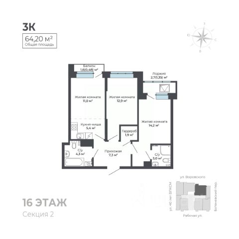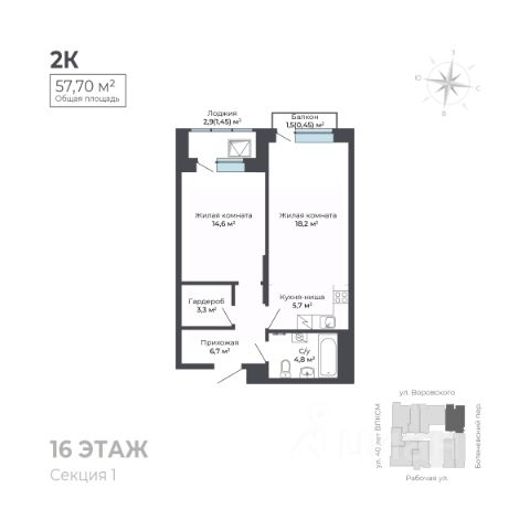 17-этажное односекционное здание дома позволяет своим жителям уже со средних этажей любоваться панорамными видами из своих окон.