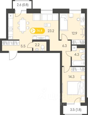На этаже располагается 7 квартир с успешно зарекомендовавшими себя планировками "Умные метры": от 1-комнатных квартир площадью 36 м до 3-комнатных квартир на 75 м. Уже традиционно на выбор доступны варианты с классическими кухнями или кухнями-гостиными.