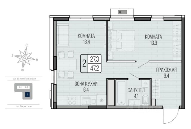 • Санузел 4,4 м² и прихожая 5,5 м².