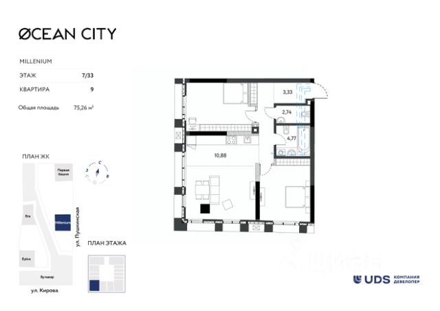 Скоро сдача! Бизнес-класс на ул. Кирова. Воплощайте мечты о доме в бульварном квартале "Пять континентов". Здесь вы сможете жить в центре Ижевска в эстетичном современном пространстве. Дома комплекса спроектированы по европейским тенденциям международным архитектурным бюро MLA+. Здесь общественные городские и частные зоны разделены не привычными заборами, а гармонично соседствуют друг с другом. Вдоль домов "Пяти континентов" пройдет городской пешеходный бульвар и станет новым маршрутом прогулок и отдыха. Бульвар начнется со сквера на пересечении улиц Кирова и Карла Маркса. И уже сейчас часть сквера построена, приходите и оцените вживую. Если вы хотите жить в невысотном доме в спокойной обстановке, то в "Пяти континентах" вам подойдут уютные дома с эркерами и лоджиями высотой всего 7-9 этажей. А если нравятся высотные дома, то в "Пяти континентах" вы увидите и высотные секции внутри квартала высотой 12 и 17 этажей. Ездить на автомобиле ежедневно или добираться пешком жителям "Пяти континентах" удобно одинаково. В комплексе есть подземный паркинг, и, в целом, он выгодно расположен на пересечении улиц Кирова и Карла Маркса, рядом с остановкой "Магазин "Океан". В 15 минутах хотьбы - Центральная площадь и набережная. Здания комплекса примыкают друг другу торцами и создают единую архитектурную форму. Дома по обе стороны бульвара задают направление для прогулок, а волнообразный рисунок брусчатки и плавные изгибы делают бульвар похожим на русло реки. Каждый дом комплекса отличается от другого этажностью, формой, цветом, геометрией фасада. • 7-17 этажей высота домов, • Всего 5 квартир на этаже, • На -1 этаже подземный паркинг, • Высота потолка 2,7 м, • Сквозной вход в дом с улицы и со двора, • Огороженный двор без машин. Передача ключей 2 квартал 2026 года. При покупке недвижимости в домах UDS вы получаете в подарок 6 или 12 месяцев дополнительного сервиса отельного уровня. В зависимости от пакета в программу входит: масштабная уборка после ремонта, генеральная и регулярная поддерживающая уборка, химчистка мебели, мойка окон, глажка вещей, личный шеф-повар на праздник. Наслаждайтесь жизнью в новой квартире с первого дня и не думайте о бытовых вопросах.