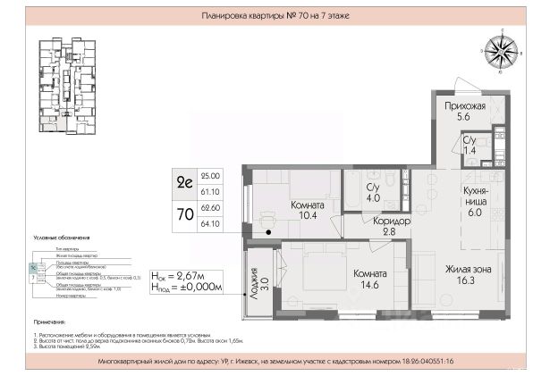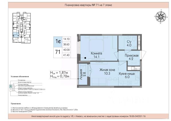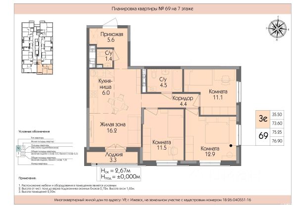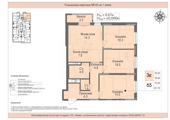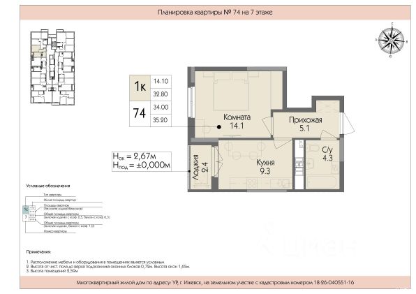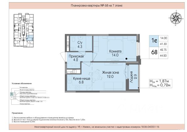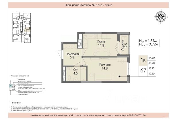 Срочная продажа, возможен торг Выдача ключей будет в уже в мае этого года Успенский — жилой комплекс комфорт-класса в Ижевске, расположенный рядом с пересечением улиц Телегина и Баранова в Ленинском районе. Застройщик — ООО СЗ Ижрегионстрой. Некоторые характеристики комплекса: Транспортная доступность: до центра города можно добраться на общественном транспорте за 1520 минут. Инфраструктура: на территории есть детская и спортивная площадки с резиновым покрытием, а также площадка для отдыха. Социальные объекты: в шаговой доступности продуктовые магазины, сквер Заречный, Успенский храм, шесть детских садов, средняя общеобразовательная школа 89 с углублённым изучением отдельных предметов. Архитектура: при строительстве применяется технология монолитного каркаса, фасады выполнены из керамического кирпича заводской окраски и качественных газобетонных блоков. Входные группы: есть большая колясочная, индивидуальные кладовые помещения на каждом этаже, собственный вход в квартиру на первом этаже. Лифты: два высокоскоростных лифта обеспечивают быстрый доступ к квартирам.