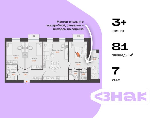 В новом жилом комплексе комфорт-класса "Знак" продается 3-комнатная квартира площадью 81.00 кв. м с отделкой white box. Квартира находится на 7 этаже 7-этажного корпуса 1. Девелопер проекта - федеральный застройщик "Железно". "Знак" - начало добрых перемен. Это жилой комплекс, где всё складывается правильно. Перемены появляются там, где для них создана среда. Когда парк под окнами, а не на другом конце города. Когда коворкинг рядом, и можно сосредоточиться, не уезжая в центр. Когда во дворе - площадки для тренировок, йоги, движения. "Знак" - как символ решений, которые привели к лучшему. Знаковое место Здесь вас ждут оживлённые площади, наполненные событиями и городским ритмом, и уютные бульвары для неспешных прогулок. Для ценителей тишины и созерцания найдутся уединённые уголки, а поклонников активного образа жизни ждут современные и технологичные спортивные площадки. Архитектура как знак качества Жилой комплекс "Знак" состоит из 6 секций высотой 7-8 этажей, лаконичный ансамбль которых окружает внутренний зеленый двор с местами для отдыха жителей. Природные материалы - древесина, камень, - натуральные оттенки земли и травы усиливают гармонию с природой. Комбинированный вентилируемый фасад, прочный кирпичный фундамент, большие окна с 2-камерными стеклопакетами и 5-камерным ПВХ-профилем гарантируют долгий срок эксплуатации, тишину и благоприятный микроклимат в каждой квартире. Лобби: искусство, в котором живут Продуманное пространство с мягкими креслами и камерными зонами отдыха создаёт атмосферу уюта, где искусство становится частью повседневности. Это вдохновляющая среда, которая пробуждает чувства и воображение с первого взгляда. Дизайн лобби воплощает концепцию эмоций в искусстве через пластику и форму. Доминантой становятся выразительные гипсовые барельефы в виде масок, объемность которых подчеркивает многоуровневое освещение. В отделке гармонично сочетаются натуральные материалы: металл контрастирует с тёплым гипсом, а керамогранит - с текстильными панно в зонах отдыха. О застройщике "Железно" - федеральный девелопер со смыслом, создающий умные мини-города с развитой инфраструктурой и высоким уровнем сервиса. За 14 лет беспрерывного развития и стремительного роста компания точно определила своё предназначение: мы с любовью и уважением к человеку создаём города будущего, меняя мир и жизнь людей к лучшему. • 6 городов России: Киров, Ижевск, Ульяновск, Екатеринбург, Пермь, Волгоград. • Строим парки, школы и детские сады. • Земельный банк более 2 000 000 м2. • ТОП-4 застройщиков России по качеству жилья (ЕРЗ.рф от июня 2025). • 28 проектов. • 6-кратные победители и 25-кратные финалисты премии Urban Awards.