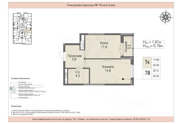 Риэлторов просьба не беспокоить. Свой личный сан. узел в студии, высокие потолки 3 метра (можно сделать второй уровень для спального места). Кухонный г арнитур, шкафы остаются. Этаж высокий (на уровне 2ого этажа). Дом кирпичный, теплый, хорошая звукоизоляция. В самом центре, рядом с университетом (УдГУ), отличная инфраструктура. Один взрослый собственник, без долгов, без обременений, без детаких долей.