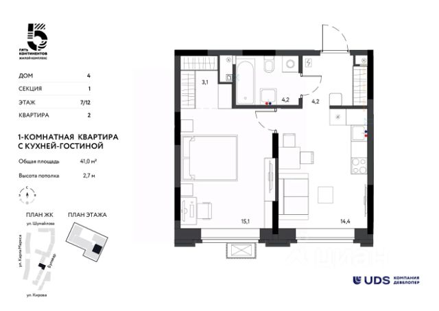 Продаётся 1-комнатная квартира в строящемся доме (Дом 7), срок сдачи: I-кв. 2029, общей площадью 37.5 кв.м., на 8 этаже. Квартира от застройщика КОМОССТРОЙ. Покупка защищена ФЗ 214 с использованием эскроу счетов. "Умные кварталы А14" - новый микрорайон комплексной застройки на улице Камбарской, вдоль живописной хвойной аллеи, вблизи гипермаркета Леруа Мерлен. План развития микрорайона включает новую общеобразовательную школу и 2 детских сада на 105 и 200 мест каждый. Рядом расположены: школа 74, детские сады 278 и 280, медцентр Академия Здоровья, гипермаркеты Леруа Мерлен и Лента, спортивный комплекс Байкал. Помимо школы и двух детских садов на территории микрорайона запроектировано размещение нескольких зон отдыха: ботанической аллеи, множества велодорожек, пикник-парка с беседками и собственным прудом, АRT-пространства с дизайнерской аркой и подсветкой из множества гирлянд. На первых этажах размещаем просторные колясочные. Вы сможете оставить коляску, велосипед или электросамокат на первом этаже, не поднимая их до своей квартиры, и они не будут занимать место в вашей прихожей или кладовке. В колясочных предусмотрены поддоны для мытья колес велосипедов и детских колясок, а также лап ваших домашних питомцев. Перед входами в подъезды предусмотрены велопарковки. Из окон А14 будут открываться замечательные виды на пойму реки Позимь, лес микрорайона "Ракетный". Квартира: Большинство квартир запроектировано в современных СМАРТ-планировках, с большими кухнями-столовыми и уютными спальнями, где каждый квадратный метр продуман до мелочей! Предусмотрена периметральная поквартирная разводка труб отопления в конструкции пола. Мы выполняем все капитальные и грязные работы до передачи квартиры собственнику. Стены подготавливаем под оклейку обоями. На полу выполняем полусухую стяжку со звукоизолирующим слоем. Устанавливаем надежные металлические входные двери с тепло- и звукоизоляцией. Выполняем прокладку электросетей, устанавливаем электросчетчики, одну розетку и один выключатель в прихожей. По проекту, водопровод и канализацию заводим в помещение с установкой заглушек, устанавливаем счётчики воды. Окна выполняем с повышенной площадью остекления, высота подоконников - 0,72 м. Устанавливаем оконные конструкции с повышенными тепло- и звукоизоляционными свойствами. Применяем ПВХ профили с повышенными теплоизоляционными свойствами и двухкамерные стеклопакеты. По дополнительному соглашению мы можем выполнить в вашей квартире чистовую отделку по нашему типовому проекту. Умный дом: В микрорайоне "Умные кварталы А14" мы реализовали новый, расширенный пакет системы Умный Дом. Это целый перечень оборудования, объединенного в единый сервис, функциями которого можно управлять удалённо, прямо с вашего смартфона