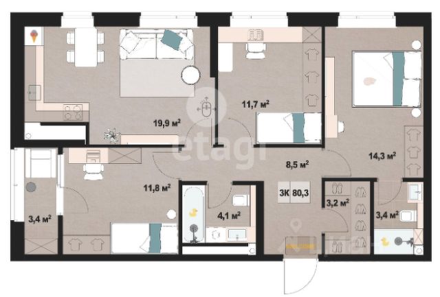 Предлагаем вашему вниманию 3-ком квартиру в Индустриальном районе города в доме 2025 года.