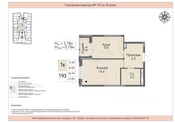 Продаётся 1-комнатная квартира в строящемся доме (Дом 2), срок сдачи: III-кв. 2026, общей площадью 37.71 кв.м., на 17 этаже. Новый жилой комплекс "Арден на Селтинской" от застройщика "СЗ Эллипсстрой" расположен по адресу Удмуртская Республика, город Ижевск, ул Луначарского