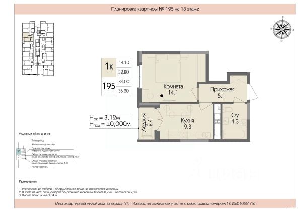 Эту квартиру можно приобрести в ипотеку по ставке от 16,9%. Рассчитаем для вас индивидуальный платеж и поможем с одобрением. Просторная видовая однокомнатная квартира на 25 этаже в новом доме 2022 года (ЖК "Счастье"). Высокие потолки 3,1 м создают ощущение простора и наполняют квартиру светом. Большая кухня с выходом на лоджию уже оборудована кухонным гарнитуром. Жилой комплекс расположен в развивающемся районе: до центра всего 5 минут на машине. Для комфорта жильцов в доме есть пассажирский и два грузовых лифта, работает консьерж. Во дворе обустроена открытая парковка. Вам нужно побывать в этой квартире и ощутить все ее преимущества Показываем в удобное для вас время по договоренности Код пользователя: 112864 Номер в базе: 12452904