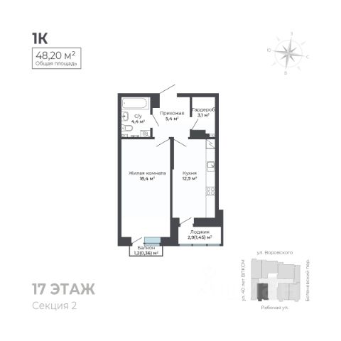 Продаётся 1-комнатная квартира в строящемся доме (дом 54), срок сдачи: II-кв. 2028, общей площадью 44.05 кв.м., на 17 этаже. Новый жилой комплекс "Арден на Орджоникидзе" от застройщика ГК "Арден" расположен по адресу: Удмуртская Республика, Ижевск, улица Гольянский посёлок, 54