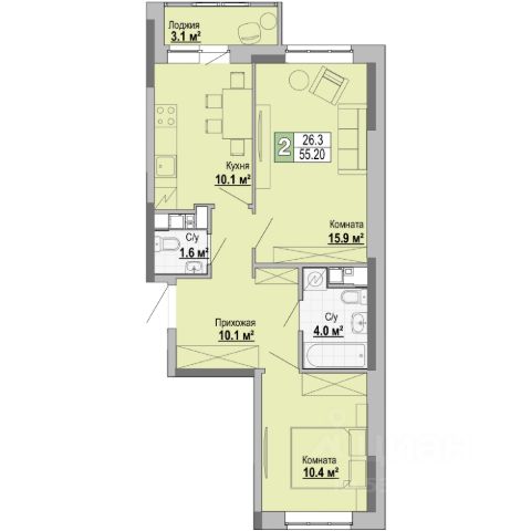Продаётся 2-комнатная квартира в строящемся доме (Дом 1), срок сдачи: II-кв. 2027, общей площадью 54.6 кв.м., на 2 этаже. ЖК "Локомотив" - это жилой комплекс, состоящий из трех домов, объединенных стилобатом. Удобное расположение, 15 минут до центра.