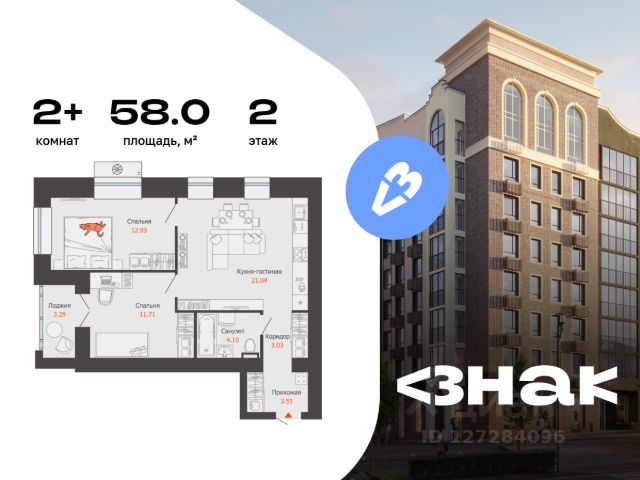 Продается 2-комнатная квартира площадью 44.00 кв. м с предчистовой отделкой. Квартира находится в жилом комплексе комфорт+ "Икигай" от федерального девелопера "Железно".