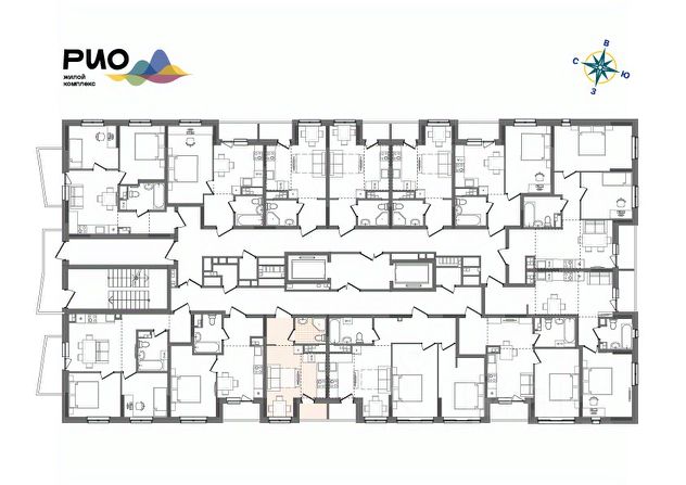 Предусмотрена периметральная поквартирная разводка труб отопления в конструкции пола.