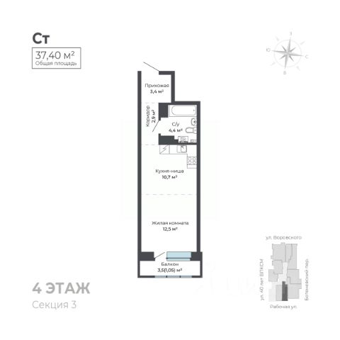 • ✓ В базе Циан 17 квартир-студий на 4 этаже в районе Первомайский в городе Ижевск