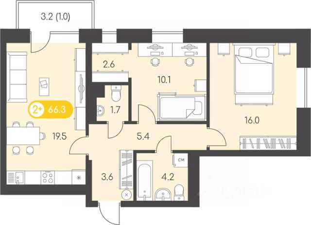 На этаже располагается 7 квартир с успешно зарекомендовавшими себя планировками "Умные метры": от 1-комнатных квартир площадью 36 м до 3-комнатных квартир на 75 м. Уже традиционно на выбор доступны варианты с классическими кухнями или кухнями-гостиными.