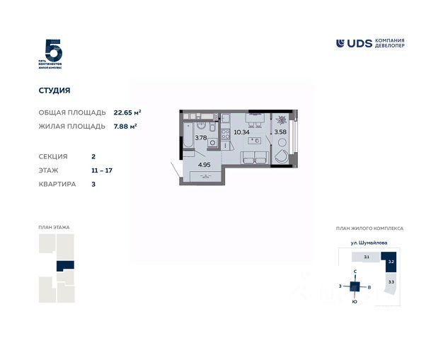 СТАРТ ПРОДАЖ! Продаётся квартира-студия от девелопера UDS в ЖК "Пять континентов" в финальном доме комплекса 5. Секция 2 на 4 этаже. Общая площадь — 26,6 м². Выбирайте квартиру в топовой локации Ижевска, чтобы создавать надёжный актив на будущее. — Самый центр города — район, где кипит жизнь. — Пешеходный бульвар вдоль домов — новое современное место для прогулок и встреч прямо под окнами. — Все виды общественного транспорта. Остановка — "магазин Океан". — 15 минут до набережной и Центральной площади. Рядом вся необходимая инфраструктура: учебные заведения, офисы крупных компаний, магазины и кафе. — Внутри комплекса — тишина и безопасность, вокруг — динамика центрального района. — Подземный паркинг и наземная стоянка. Кафе и магазины — на 1 этаже. Сервисы отеля у вас дома — при покупке недвижимости в домах UDS получаете в подарок 6 месяцев сервиса: масштабная уборка после ремонта, генеральная и регулярная поддерживающая уборка, химчистка мебели, мойка окон. Наслаждайтесь жизнью в новой квартире с первого дня и не думайте о бытовых вопросах. Идеальная планировка для инвестиций или как первая квартира для ребёнка: • Комната 18,9 м² с видом на бульвар. • Ниша для шкафа в прихожей. • Место под кондиционер. • Ванная комната 4,2 м². • Всего 48 квартир в доме, 9 этажей меньше соседей, больше приватности. Передача ключей — до 30 марта 2029 года. Первые дома уже сданы. Пройдите тест-драйв ЖК — приглашаем на экскурсию. Специальные условия покупки от UDS: • Рассрочка 0% — без переплат. • Трейд-ин — обменяем вашу квартиру на новую. • Банковские программы — рассчитаем на месте. Звоните, пишите — поможем подобрать оптимальные условия. ЖК "Пять континентов" — жильё в центре — ликвид, с которым вы всегда в плюсе. Купить квартиру-студию в новостройке с отделкой в районе Октябрьский в городе Ижевск.