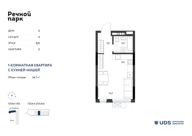 Квартира-студия расположена в 4-этажной секции ЖК "Речной парк" дом 2. Объединяет функциональную жилую комнату с кухней-нишей и прихожую, где уже запланировано место под шкаф для сезонной одежды. В санузле достаточно места для установки полноценной ванны и стиральной машины. В комнате 2 окна, выходят на юг, во двор. Комнаты светлые - уровень подоконника 60 см от пола, высота окна 1,7 м. При покупке недвижимости в домах UDS вы получаете в подарок 6 или 12 месяцев дополнительного сервиса отельного уровня. В зависимости от пакета в программу входит: масштабная уборка после ремонта, генеральная и регулярная поддерживающая уборка, химчистка мебели, мойка окон, глажка вещей, личный шеф-повар на праздник. Наслаждайтесь жизнью в новой квартире с первого дня и не думайте о бытовых вопросах.