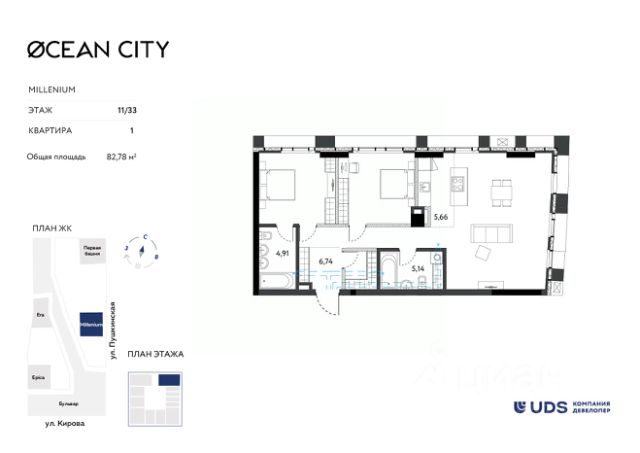 Лучший жилой небоскреб. Самый высокий дом в Ижевске, который видно даже с самолета. OCEAN CITY (ЖК Оушен сити) - для тех, кто хочет жить на высоте и ценит статус. Панорамные виды из окон, которые будут всегда с вами. Неземной двор на высоте 8 метров - эксклюзивная приватная территория только для резидентов OCEAN CITY (ЖК Оушен сити). Зоны отдыха, дизайнерские детские площадки, open-air тренажеры. 10 000 м² пешеходного бульвара "ОКЕАН" — стильное продолжение вашего пространства. Вечерние променады, уютные кафе, живая атмосфера — дорога домой превратиться в удовольствие. Бутиковый ритейл у вас под ногами — кофейни, рестораны, spa-салоны, премиальные магазины. На массаж и за кофе в тапочках, не выходя на улицу. Технологии комфорта нового поколения: Бесключевой доступ — дом распознаёт вас автоматически. Премиальные высокоскоростные лифты с увеличенными потолками — перемещения в стиле CITY. Свободные планировки — воплотите любую дизайн концепцию без границ. Панорамное остекление с интегрированным климат-контролем — идеальный микроклимат без компромиссов. Тёплый подземный паркинг 24/7 — ваш автомобиль в безопасности в любое время года. Инвестиция в престижную недвижимость — OCEAN CITY (ЖК ОКЕАН сити) не просто жильё, а актив, который будет расти в цене. Продается квартира на улице Пушкинская в городе Ижевск.