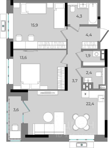 Восьмой дом-квартал состоит из четырех корпусов, расположенных на стилобате — общем первом этаже дома, на котором располагается двор. Внутри стилобата — двухуровневый паркинг, кладовые и коммерческие помещения. Каждый корпус имеет свой характер. Совсем, как люди, которые будут жить в них.