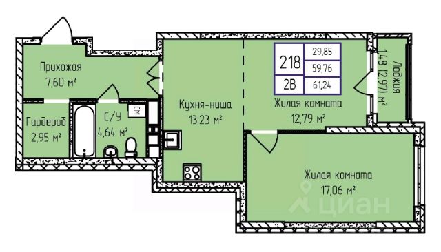 Срочно! Продаётcя уютнaя 2-комнaтная квартира (без балкона 63,7 м²) c евро pемонтoм и удoбной планиpoвкoй.