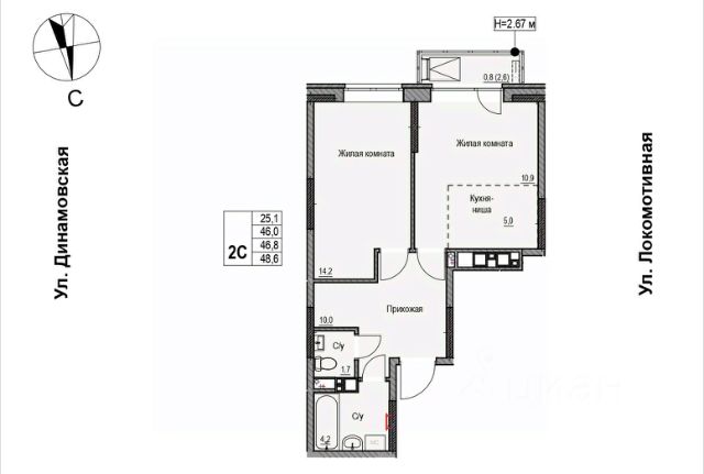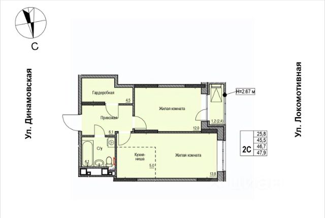 Продаётся 2-комнатная квартира в строящемся доме (Дом 2), срок сдачи: II-кв. 2028, общей площадью 46.7 кв.м., на 8 этаже. ЖК "Локомотив" - это жилой комплекс, состоящий из трех домов, объединенных стилобатом. Удобное расположение, 15 минут до центра.
