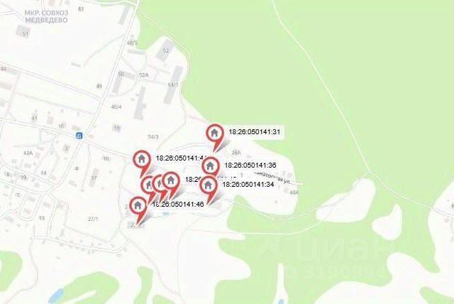 Принадлежит предприятию и ПРОДАЕТСЯ НА ЭЛЕКТРОННЫХ ТОРГАХ на площадке ЭТП РФ, Номер извещения BNKOA00014022 Состав комплекса: 1. Земельные участки общей площадью 22 462 кв.м. Кадастровые номера: 18:26:050141:41 , 18:26:050141:46, 18:26:050141:33, 18:26:050141:39, 18:26:050141:43, 18:26:050141:31,18:26:050141:36, 18:26:050141:34. 2. Здания и сооружения овощехранилищ и пункта пастеризации молока с пристроем общей площадью 3 066,40 кв. м. Ближайшее окружение можно охарактеризовать как смешанное: с западной части от объектов расположены малоэтажные жилые дома и Ижевский плодопитомник, с восточной, северной и южной сторон от объектов малоэтажные жилые дома и незастроенные земельные участки. Годы постройки объектов датируются от 1966 г. до 2000 г., состояние зданий — неудовлетворительное, у большинства зданий отсутствует заполнение дверных проемов, в некоторых местах имеются разрушения кирпичной кладки. Текущее использование — не используется. Транспортную доступность можно охарактеризовать как хорошую. Расстояние до остановки общественного транспорта Медведево составляет 0,30 км. Доступность личным автомобильным и общественным транспортом оценивается как — хорошая. Парковка и маневрирование автомобилей возможно непосредственно на подъезде к имуществу. Район расположения обеспечен необходимыми элементами инженерной инфраструктуры (электроснабжение, газоснабжение, водоснабжение и канализация локальные). Социальная инфраструктура в непосредственной близости от земельно-имущественного комплекса относительна развита, что связано с расположением в зоне смешанной застройки.