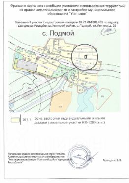 земельный участок с кадастровым номером 18:21:061001:401, расположенного по адресу: Удмуртская Республика, Увинский район, с. Подмой, ул. Ленина, д. 29, площадью 1200 кв.м, без обременений, ограничений и сервитутов, с видом разр...