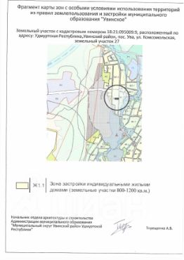 земельный учаесток с кадастровым номером 18:21:095011:200, расположенный по адресу: Удмуртская Республика, Увинский муниципальный район, сельское поселение Увинское, пос. Ува, ул. Комсомольская, земельный участок 16а, площадью 10...