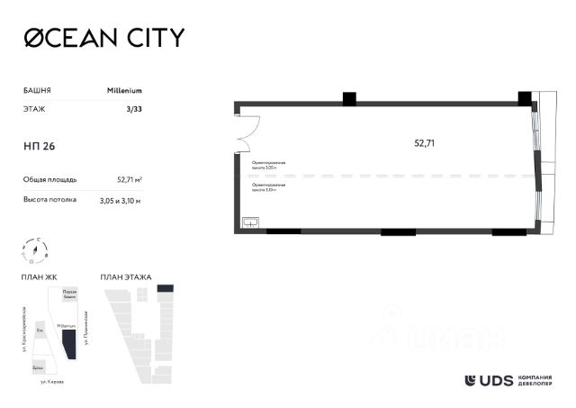 Продается коммерческое помещение 52,71 м² на 3 этаже в строящейся башне OCEAN CITY — самом узнаваемом и статусном проекте Ижевска.