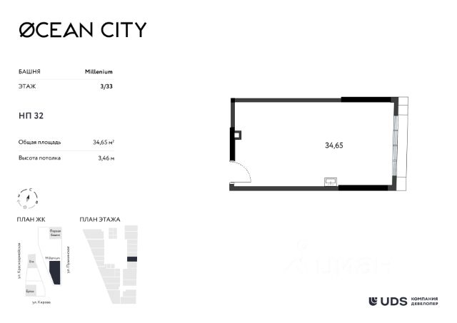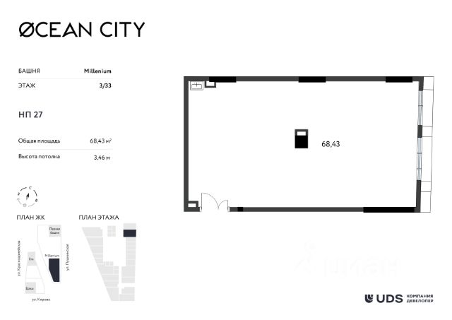 Продается коммерческое помещение 68,43 м² на 3 этаже в строящейся башне OCEAN CITY — самом узнаваемом и статусном проекте Ижевска.