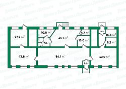 Общая площадь составляет 313,8 квадратных метра. Высота потолков — 2.7 метра, что создаёт ощущение пространства и комфорта. Помещение расположено на первом этаже жило...