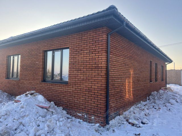 Фасад выполнен из клинкерного кирпича серии Ноттингем - ЛСР на кладочном растворе Weber Vetonit ML5 для клинкерного кирпича серого цвета. Перемычки из вертикальных кирпичей, выполнены без уголка. Применение заводского кладочного раствора вместе с клинкерным кирпичом позволяет избежать "высолов" и других вредных факторов влияющих на долговечность фасада. Стены - газоблок D400 400мм толщиной. Завод "Теплон" - Ульяновск. Общая толщина стены - 515мм. Стропильная система кровли собрана из ферм заводского изготовления на метало-зубчатых пластинах. Стропильная система рассчитана на снеговые и ветровые нагрузки нашего региона. Кровельное покрытие - двухслойная мягкая черепица серии Ранчо. Форма нарезки - Драконий зуб, цвет - серый. Установлены кровельные аэраторы для вентиляции подкровельного пространства. Свесы и подшив кровли выполнены из металла с текстурной краской серого цвета. Весь софит перфорированный, что позволяет эффективно отводить влагу. Утепление чердачного перекрытия - 300 мм, выполнено из насыпной минеральной ваты ISOVER. Окна REHAU Delaight - 70мм, снаружи выполнено ламинирование оконных блоков серой пленкой, внутри окна белые, стеклопакеты слегка тонированы серым цветом. На террасе выполнен алюминиевый витраж с установленной в него качественной дверью с терморазрывом, такая-же дверь установлена на входе. Отопление выполнено системой теплых полов из трубы с кислородным барьером. Под теплыми полами произведено утепление - 100 мм экструзионного пенополистирола. Это позволит поддерживать комфортную температуру в помещении не нагревая поверхность пола выше 33 градусов. Даже в самый сильный мороз температура пола будет комфортной и можно ходить без тапочек. В доме предусмотрена разводка для установки комнатных термостатов, что позволит менять температуру в помещении при помощи пульта на стене. Также в доме установлена "умная" вентиляция, которая включается при превышении уровня CO2 в каждом конкретном помещении. Вентиляторы вынесены в котельную, это позволит вам отдыхать со свежим воздухом и в комфортных условиях, шума не будет. Цоколь дома отделан искусственным камнем, залиты ступени и оба крыльца. Выполнено устройство утепленной бетонной отмостки. Установлены "закладные": - труба для прокладки электричества со стороны дороги. Это позволит вам вывести электричество для калитки, откатных ворот, видеонаблюдение и прочее без сверления фасада. - трубы для подключения бани к отоплению и электричеству. Т.к. в доме установлен газовый котел избыточной мощности это позволит вам подключить баню к отоплению и электричеству из дома. Вам не надо будет что-то сверлить и ломать все коммуникации уже в земле. Дом расположен на юго-западом склоне холма. Солнечная сторона.
