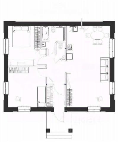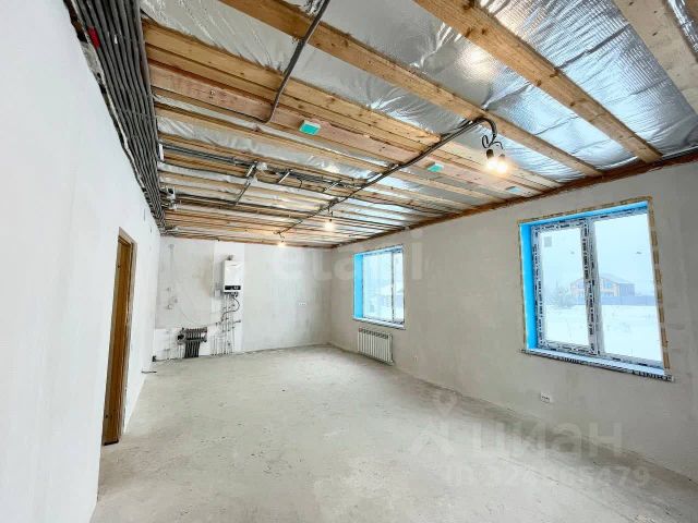 Второй этаж разделе на кухню-столовую и большую гостевую комнату. В настоящий момент этаж утеплен, подведены трубы для всех коммуникаций.