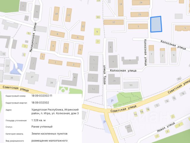 Продам з/у, поселок Игра, ул. Колхозная, 3. Кадастровый номер: 18:09:032002:11 Центральная часть Игры, 100 метров от ул.Советской В шаговой доступности вся инфраструктура и коммуникации Площадь 13.3 сотки ВРИ: размещение малоэтажного многоквартирного жилого дома (зона ж-2) Условно разрешённые виды использования: Парки культуры и отдыха — код 3.6.2 Магазины — код 4.4 Площадки для занятий спортом — код 5.1.3 Предоставление коммунальных услуг — код 3.1.1 Гостиничное обслуживание — код 4.7 Хранение автотранспорта — код 2.7.1 Дошкольное, начальное и среднее общее образование — код 3.5.1 ГПЗУ в наличии 1 собственник (физ.лицо) Чистая продажа Без обременений, долгов, арестов Стоимость: 4,7 млн, возможен торг Вопросы по телефону или в сообщения