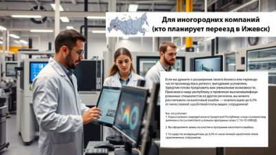 Бонус для иногородних/федеральных компаний. Если вы думаете о расширении своего бизнеса или переводе части производства в регион с выгодными условиями, Удмуртия готова предложить вам уникальные возможности. Приезжая в нашу республику и привлекая высококвалифицированных специалистов из других регионов, вы можете рассчитывать на налоговый кэшбек — компенсацию до 6,5% от начисленной заработной платы ваших сотрудников!