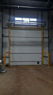 - Большие ворота подъемно-секционные 4*4,5(h) м. на нулевом уровне пола и вторые ворота 4*3 (h) м. для загрузки с рампы (h рампы=1.15м.)