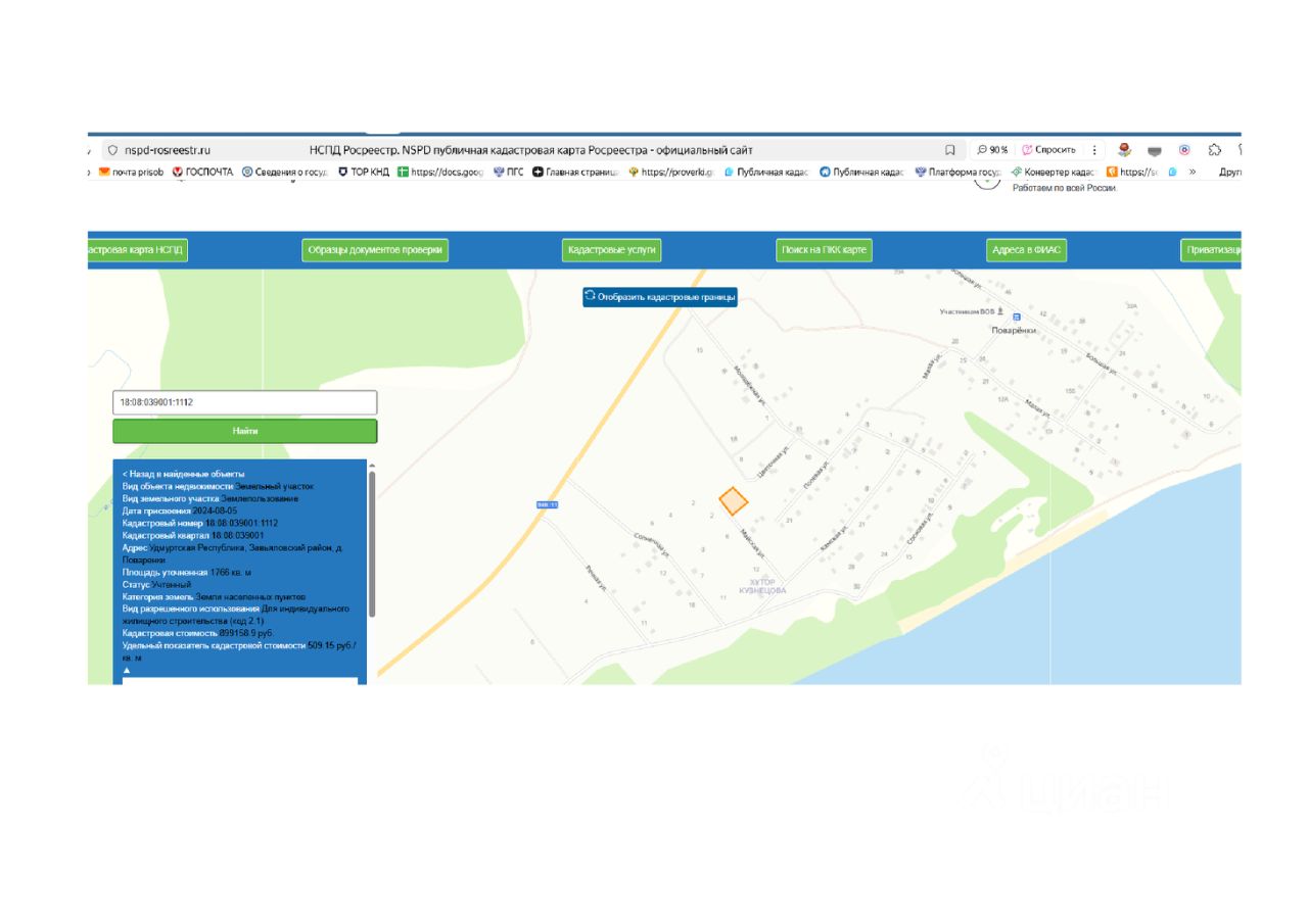 Земельный участок с кадастровым номером 18:08:039001:1112 площадь 1766 по адресу Удмуртская Республика, Завьяловский район, д. Поваренки