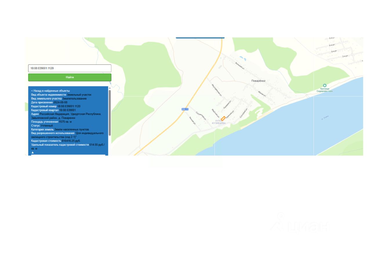 Земельный участок с кадастровым номером 18:08:039001:1120 площадь 1575 по адресу Российская Федерация, Удмуртская Республика, Завьяловский район, д. Поваренки