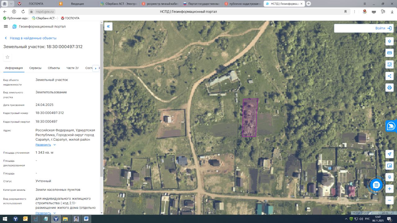Аукцион в электронной форме на право заключения договора аренды земельного участка площадью 1343 кв.м., кадастровый номер 18:30:000497:312, расположенного по адресу: Российская Федерация, Удмуртская Республика, Городской округ город Сарапул, г. Сарапул, жилой район Дубровка, проезд Береговой, земельный участок 22, категория земель: земли населенных пунктов, вид разрешенного использования: "Для индивидуального жилищного строительства (код 2.1)"
