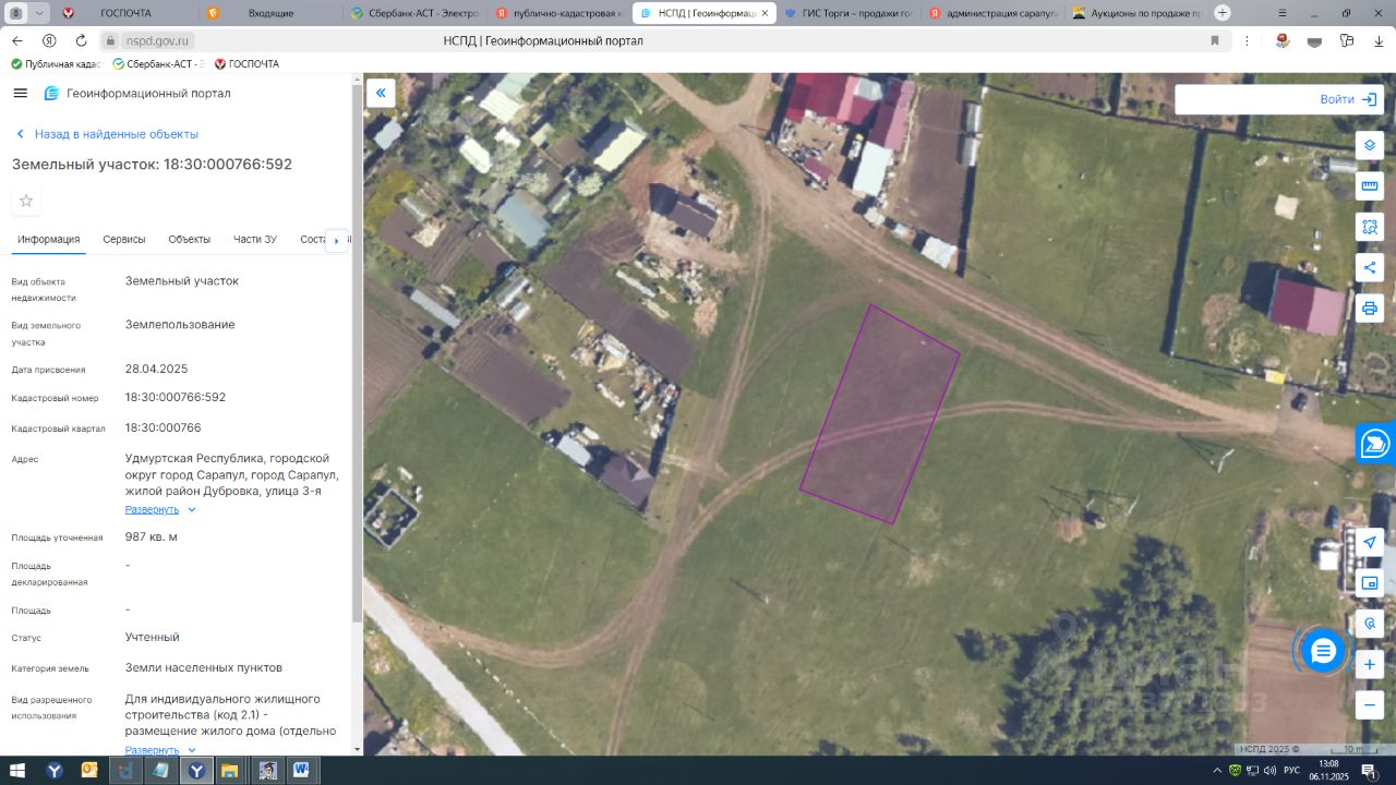 Аукцион в электронной форме на право заключения договора аренды земельного участка площадью 987 кв.м., кадастровый номер 18:30:000766:592, расположенного по адресу: Удмуртская Республика, городской округ город Сарапул, город Сарапул, жилой район Дубровка, улица 3-я Лесная, земельный участок 25б, категория земель: земли населенных пунктов, вид разрешенного использования: "Для индивидуального жилищного строительства (код 2.1)".