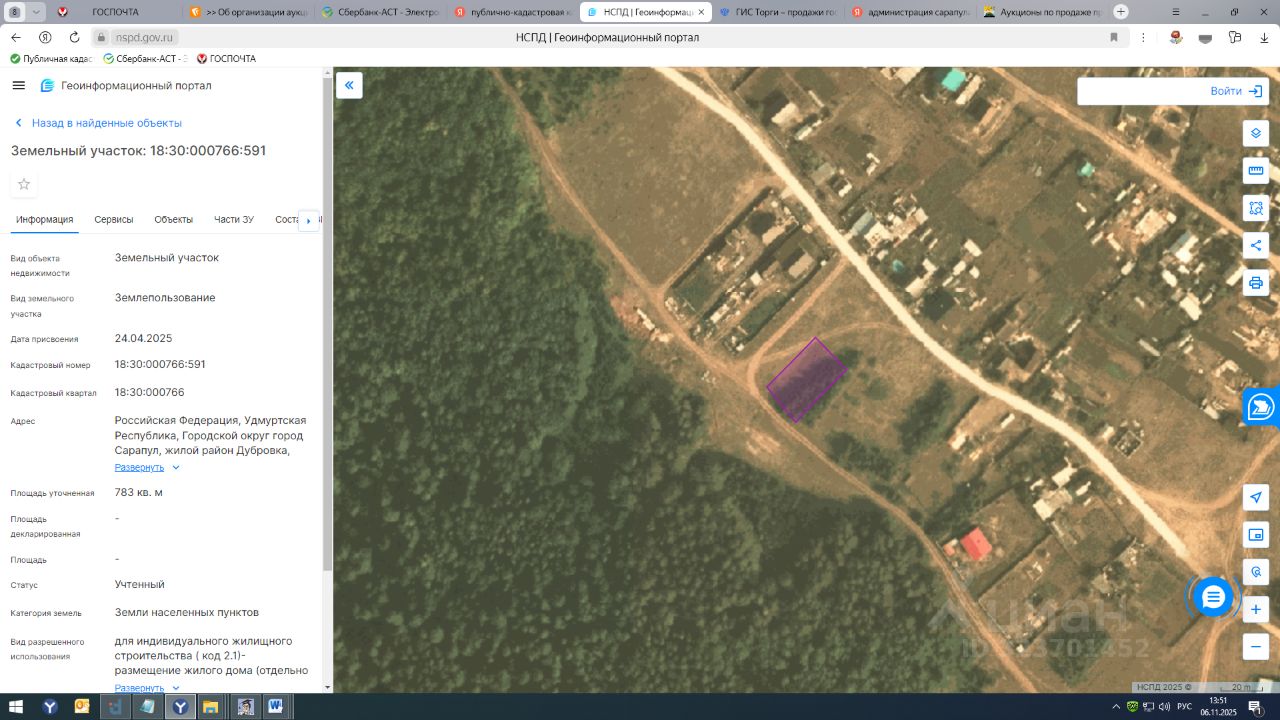 Аукцион в электронной форме на право заключения договора аренды земельного участка площадью 783 кв.м., кадастровый номер 18:30:000766:591, расположенного по адресу: Российская Федерация, Удмуртская Республика, Городской округ город Сарапул, жилой район Дубровка, улица 1-я Лесная, земельный участок 36, категория земель: земли населенных пунктов, вид разрешенного использования: "Для индивидуального жилищного строительства (код 2.1)".
