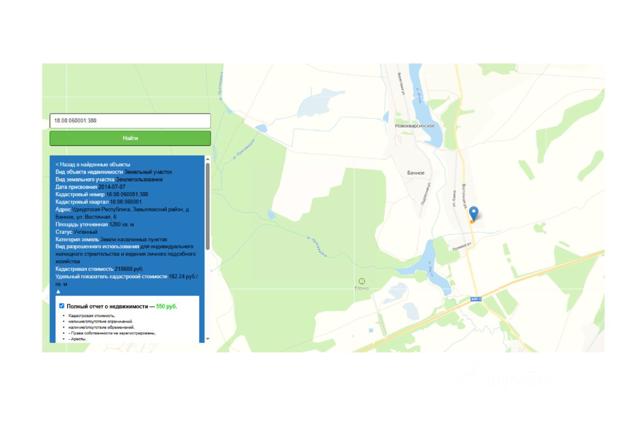 Земельный участок с кадастровым номером 18:08:060001:380 площадь 1200 по адресу Удмуртская Республика, Завьяловский район, д. Банное, ул. Восточная, 6
