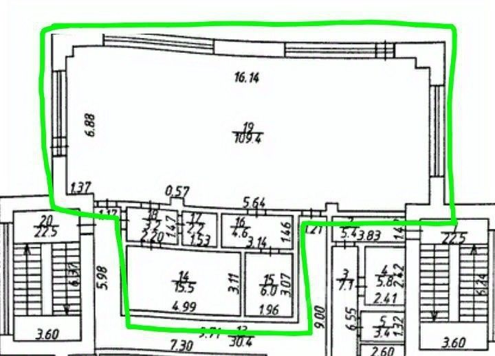 Состоит из большого зала 110 кв м с зоной бара и подсобных помещений - кухня, санузел.