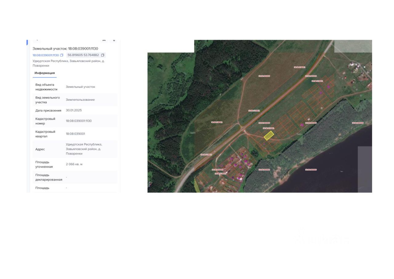 Земельный участок с кадастровым номером 18:08:039001:1130 площадь 2066 по адресу Удмуртская Республика, Завьяловский район, д. Поваренки