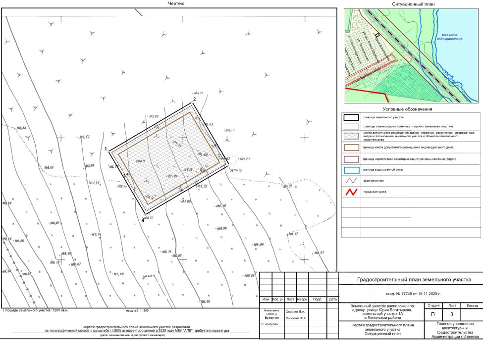 Аренда земельного участка с кадастровым номером 18:26:040714:515, с адресом: Удмуртская Республика, город Ижевск, улица Юрия Богатырева, земельный участок 1А, площадью 1200 кв.м., разрешенное использование: Для индивидуального жилищного строительства (код 2.1).