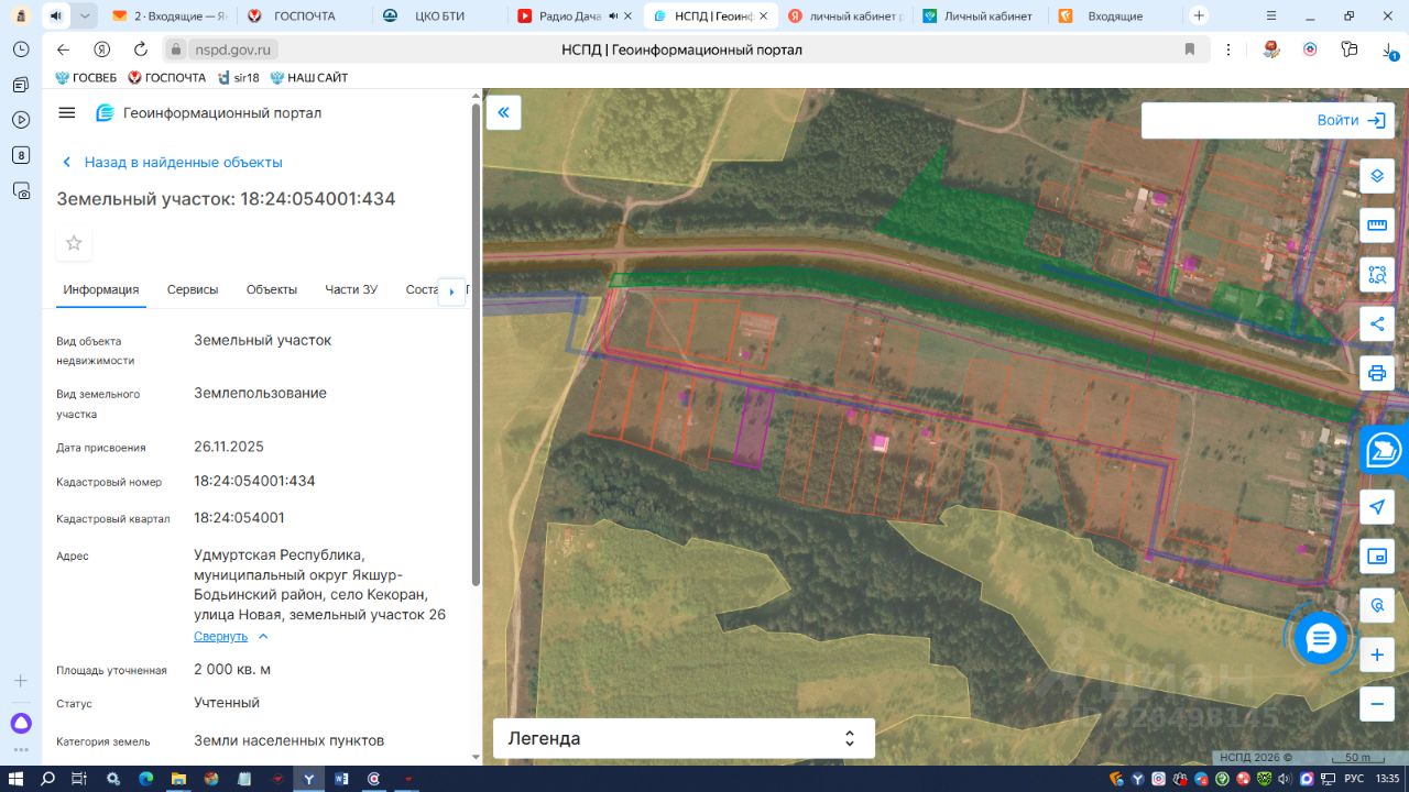 земельный участок с кадастровым номером 18:24:054001:434, общей площадью 2000 кв.м., из земель населенных пунктов, расположенного по адресу: Удмуртская Республика, муниципальный округ Якшур-Бодьинский район, село Кекоран, улица Новая, земельный участок 26, с разрешенным использованием: Для индивидуального жилищного строительства (код 2.1).