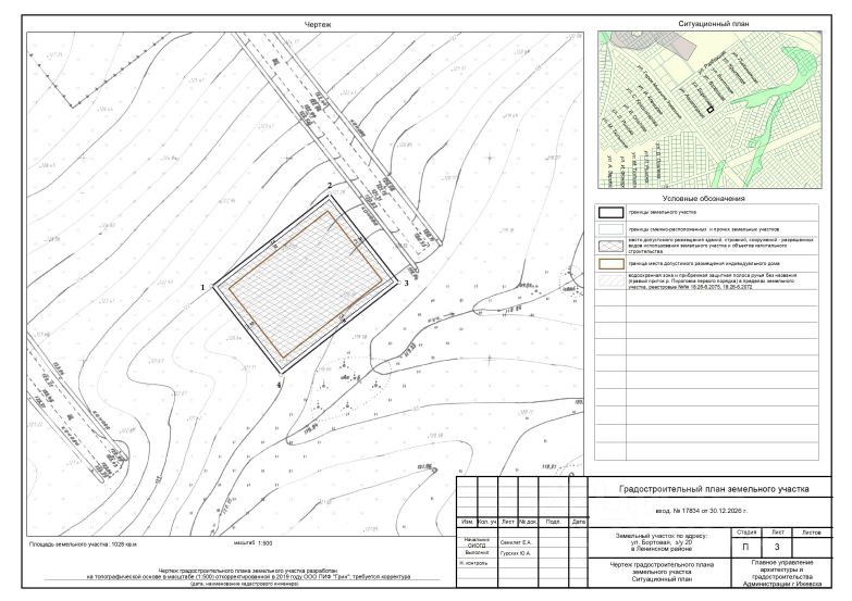 Аренда земельного участка с кадастровым номером 18:26:040007:2824, с адресом: Российская Федерация, Удмуртская Республика, городской округ город Ижевск, город Ижевск, улица Бортовая, земельный участок 20, площадью 1028 кв.м., с разрешенным использованием: Для индивидуального жилищного строительства (код 2.1).