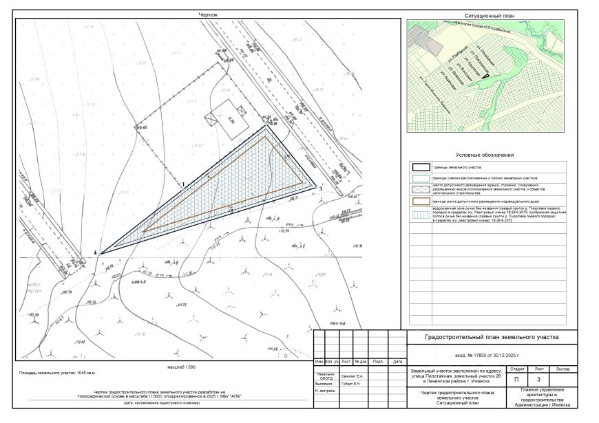 Аренда земельного участка с кадастровым номером 18:26:040007:2825, с адресом: Российская Федерация, Удмуртская Республика, городской округ город Ижевск, город Ижевск, улица Пилотажная, земельный участок 26, площадью 1045 кв.м., с разрешенным использованием: Для индивидуального жилищного строительства (код 2.1).