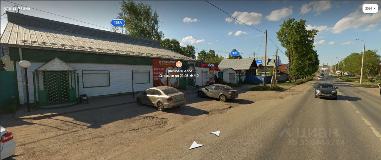 Двухэтажное здание находится на первой линии ул. Азина.