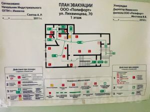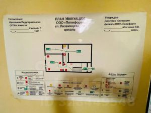 В помещении есть запасной выход, вентиляция вытяжная, принудительная. Частично установлены кондиционеры.