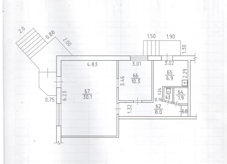 * Площадь: 58,6 кв. м. — оптимальный формат для розницы, сферы услуг, отделения банка и т.д.